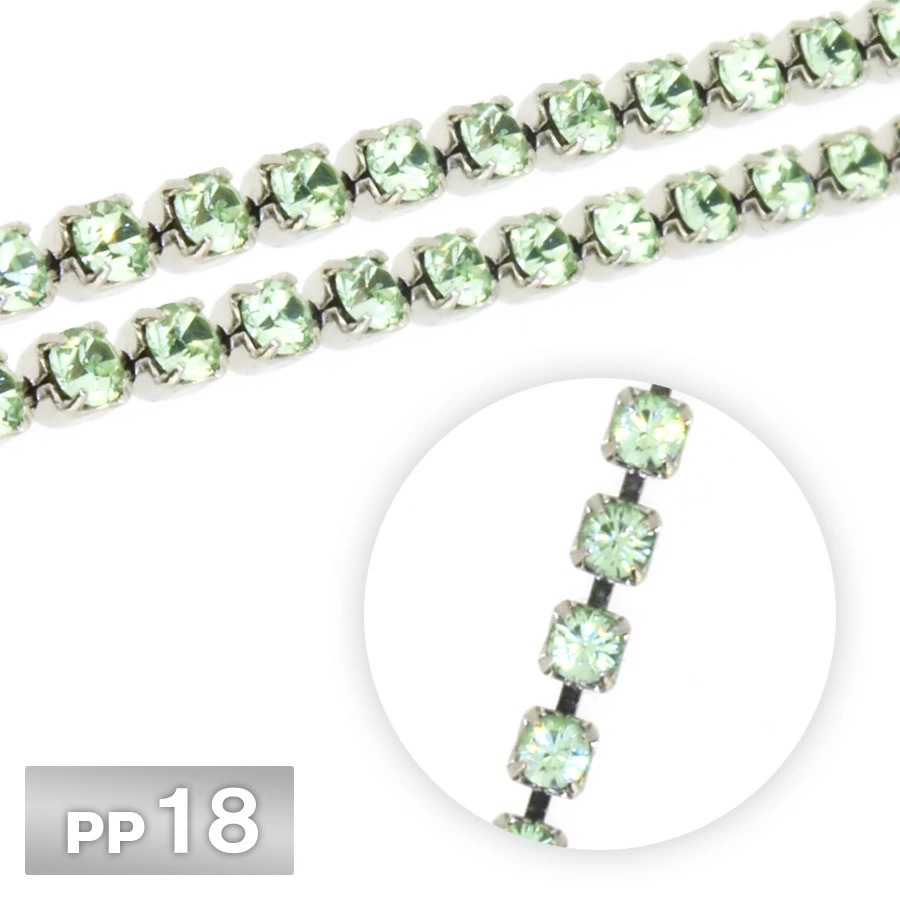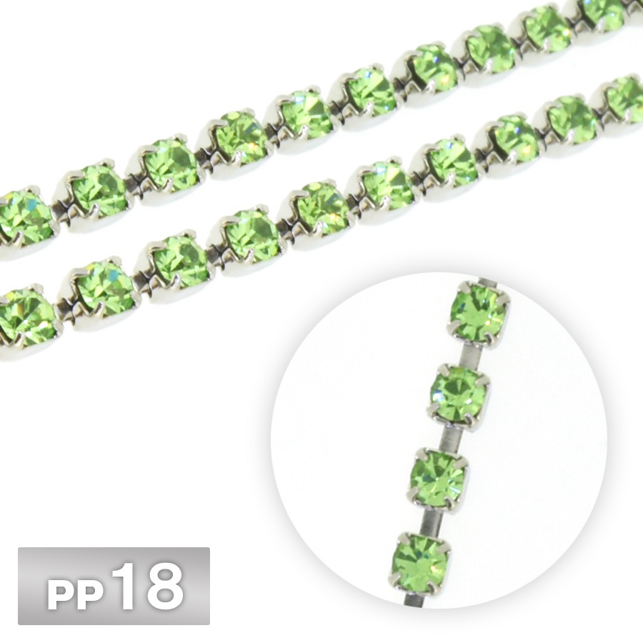 ラインストーン チェーン PP18 10cm/1m ペリドット Rhカラー ロジウム 連爪 デコ ネイル 手芸 パーツ ビジュー