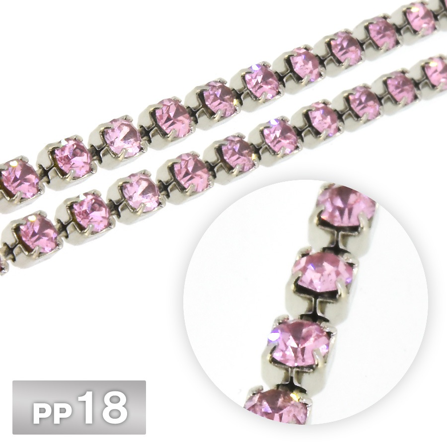 ラインストーン チェーン PP18 10cm/1m ライトローズ Rhカラー ロジウム 連爪 デコ ネイル 手芸 パーツ ビジュー