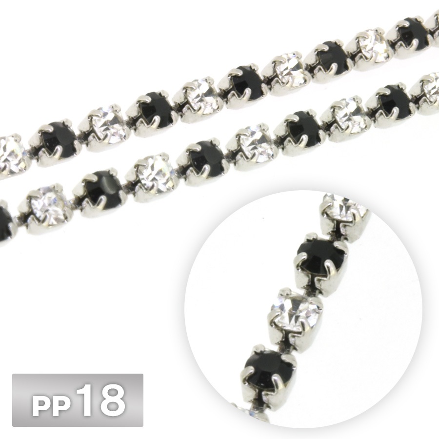 ラインストーン チェーン PP18 10cm/1m ジェット Rhカラー ロジウム 連爪 デコ ネイル 手芸 パーツ ビジュー