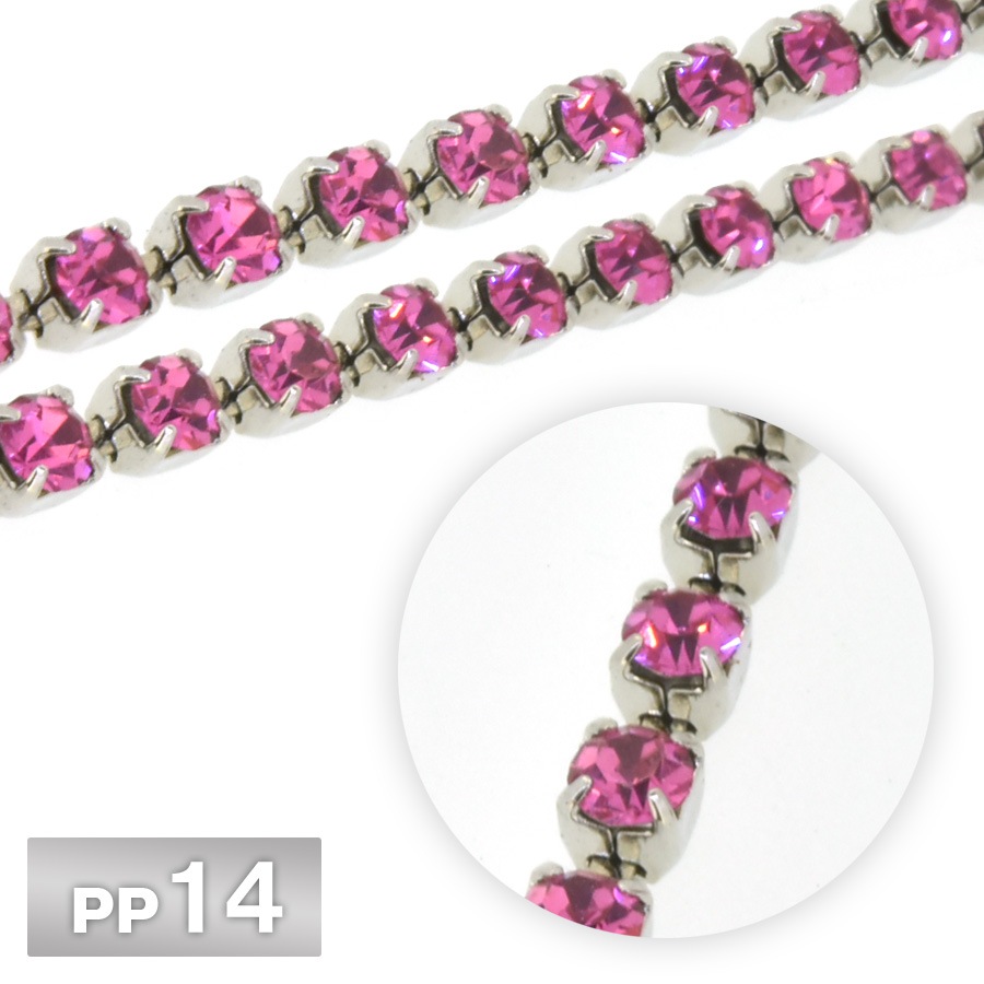 ラインストーン チェーン PP14 10cm/1m ライトローズ Rhカラー ロジウム 連爪 デコ ネイル 手芸 パーツ ビジュー