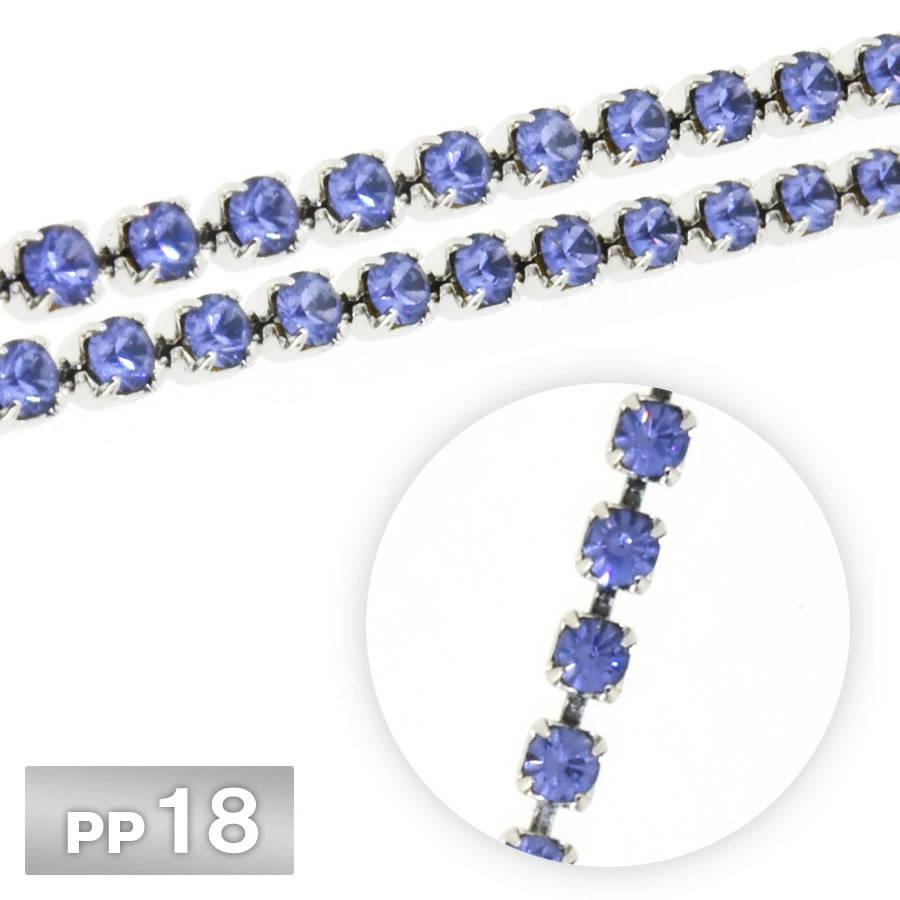 ラインストーン チェーン PP18 10cm/1m タンザナイト Rhカラー ロジウム 連爪 デコ ネイル 手芸 パーツ ビジュー