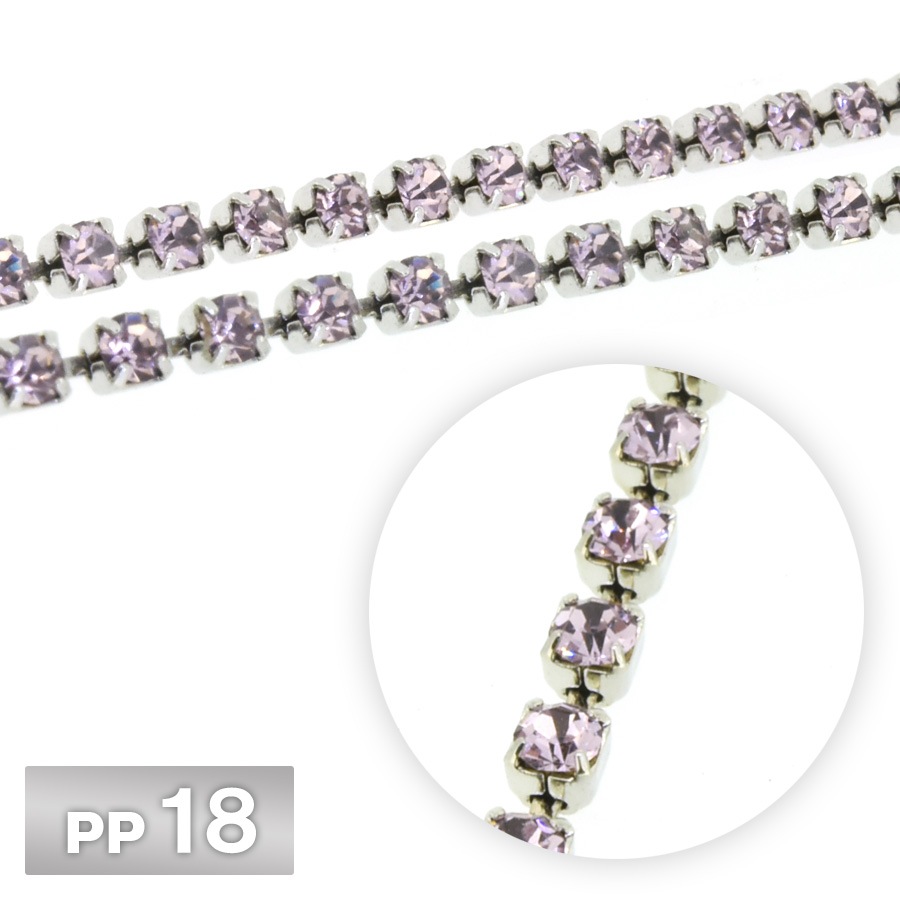 ラインストーン チェーン PP18 10cm/1m ライトアメジスト Rhカラー ロジウム 連爪 デコ ネイル 手芸 パーツ ビジ...
