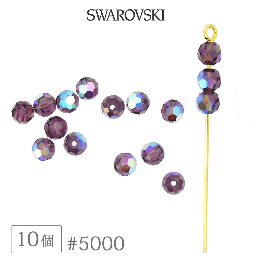 スワロフスキー クリスタル #5000 アメジストAB オーロラ加工 4mm 10個 SWAROVSKI ラウンド ダイヤカット ...