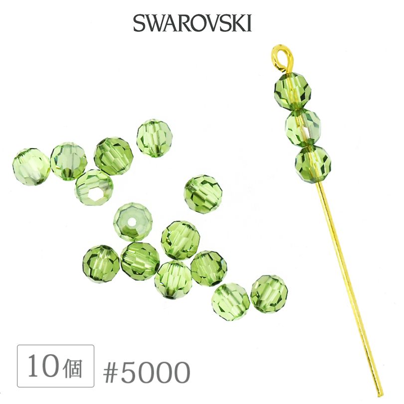 スワロフスキー クリスタル #5000 ペリドット 4mm 10個 SWAROVSKI ラウンド ダイヤカット ガラス ビーズ デ...