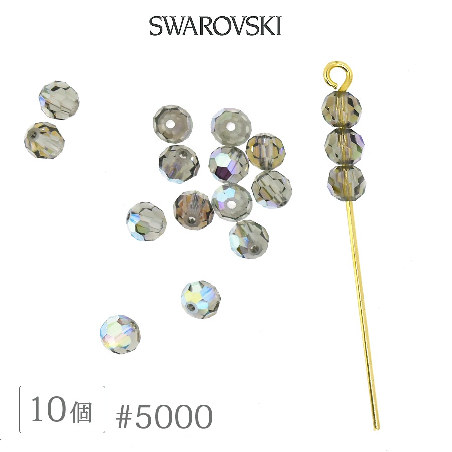 スワロフスキー クリスタル #5000 ブラックダイヤモンドAB オーロラ加工 4mm 10個 SWAROVSKI ラウンド ダイ...