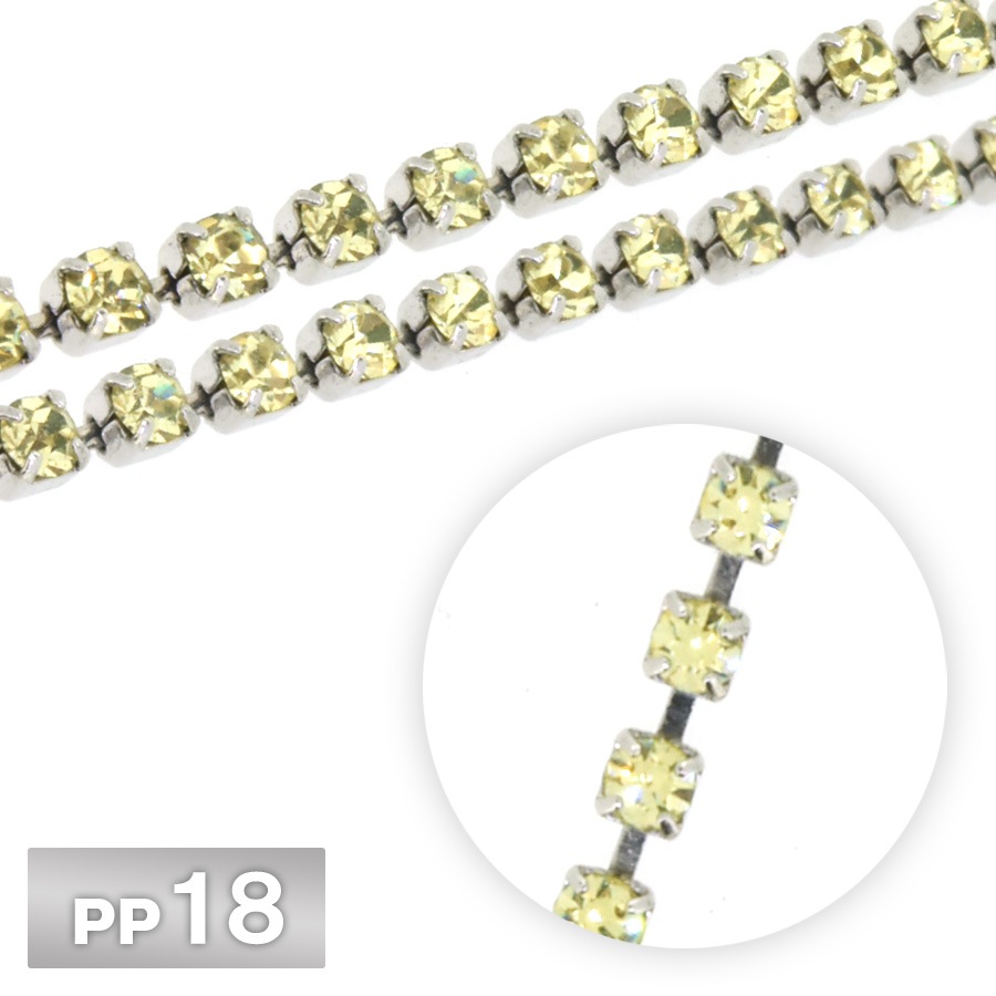 ラインストーン チェーン PP18 10cm/1m クリソライト Rhカラー ロジウム 連爪 デコ ネイル 手芸 パーツ ビジュー