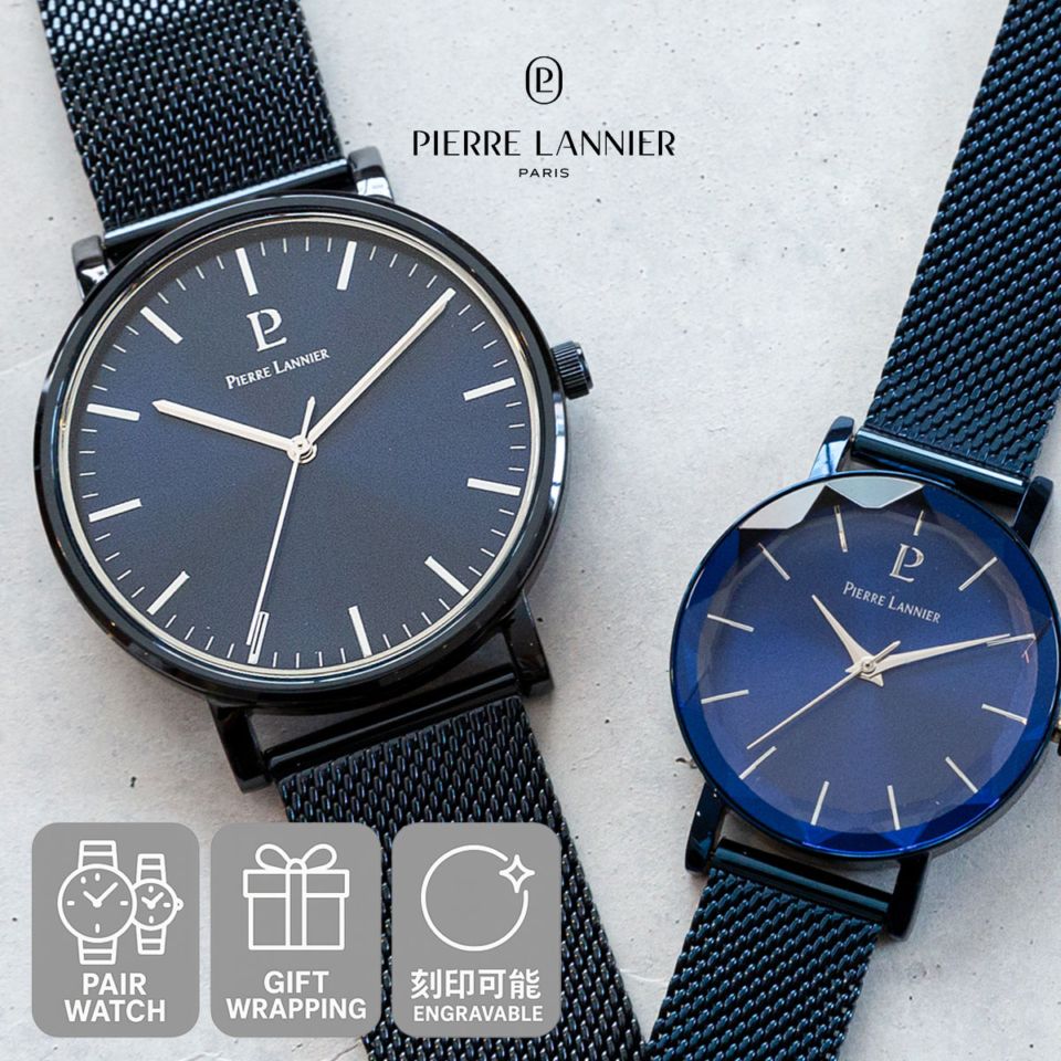 ピエールラニエ ペアウォッチ 夫婦 カップル 社会人 金属ベルト ネイビー シルバー おしゃれ 腕時計