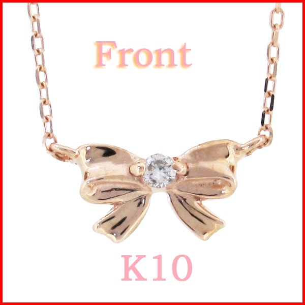 ★ 送料無料 ★【Lovers&Ring】ダイヤモンドリボンピンクゴールドネックレス