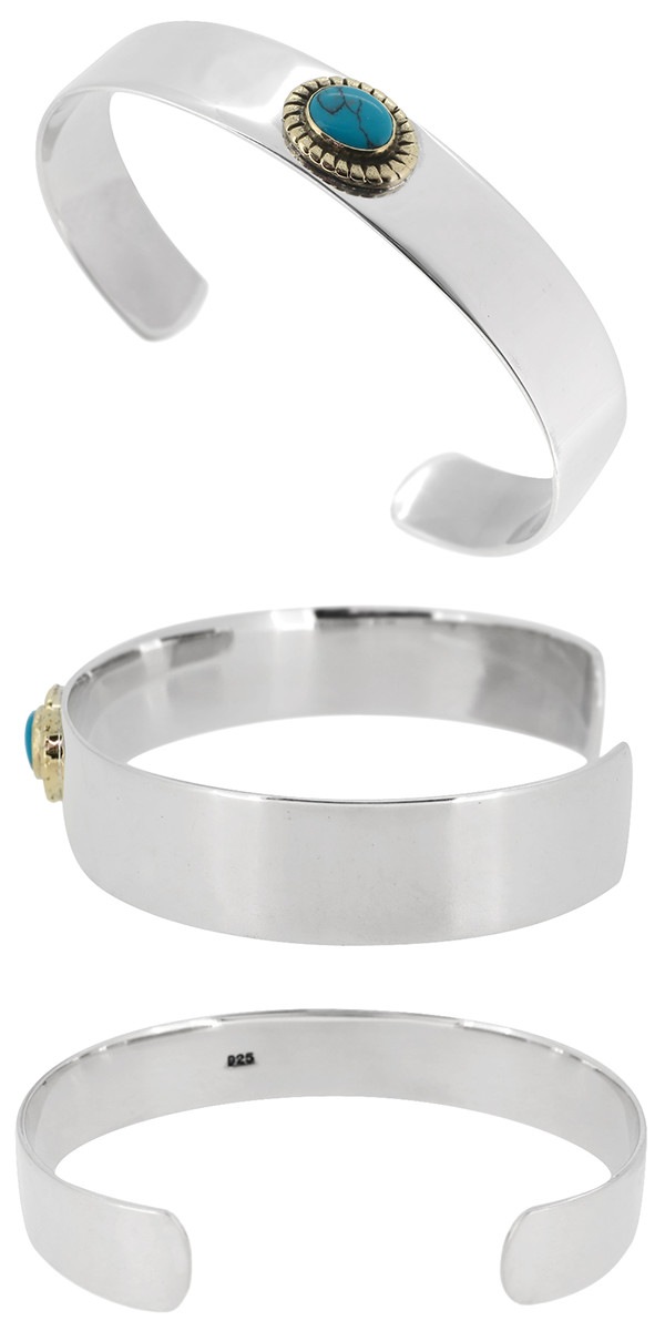 【送料無料】練りターコイズ 鏡面仕上げ シルバーバングル