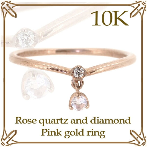 【送料無料】ローズクォーツ ダイヤモンド ピンクゴールド リング