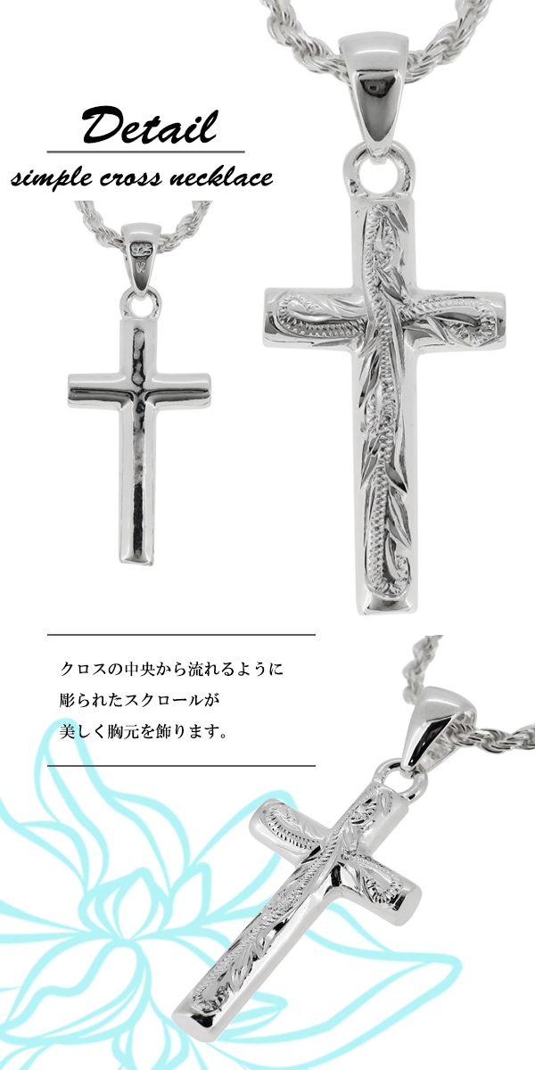 ★送料無料★ 【ハワイアンジュエリー】手彫りクロス シルバーネックレス