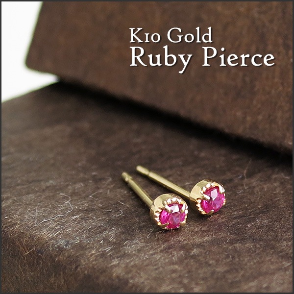 ★送料無料★ ルビー ピアス イエローゴールド 2P
