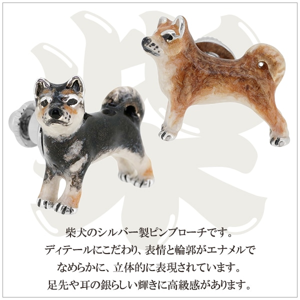 【送料無料】 柴犬 シルバー ピンブローチ 黒/茶色