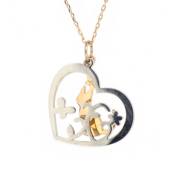 猫 ゴールドネックレス(チェーン付きペンダント) ねこ キャット ハート アイビー ツタ アラベスク 唐草 植物 プレート 板 1...