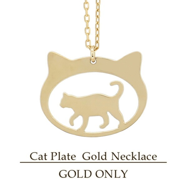 K10 YG キャットフェイス 猫 プレート ネックレス 10金 10k k10 イエロー ゴールド レディース 女性用 ねこ ネ...
