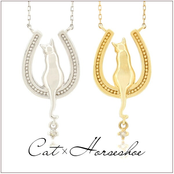 K10 YG WG 馬蹄 猫 ダイヤモンド ゴールド ネックレス 10金 10k k10 ホースシュー キャット レディース 女性...