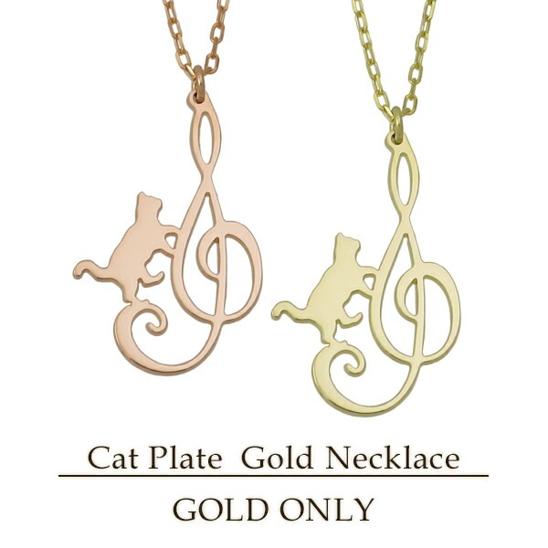 K10 YG PG 散歩 猫 ト音記号 プレート ネックレス 10金 10k k10 ピンク ゴールド レディース 女性用 ねこ ...