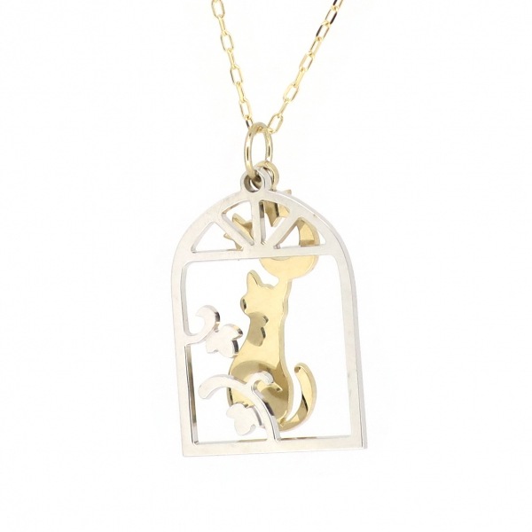 K10 YG WG 月夜の来客 猫シルエット スライドプレート ネックレス 10金 10k k10 ホワイト イエロー ゴールド ...