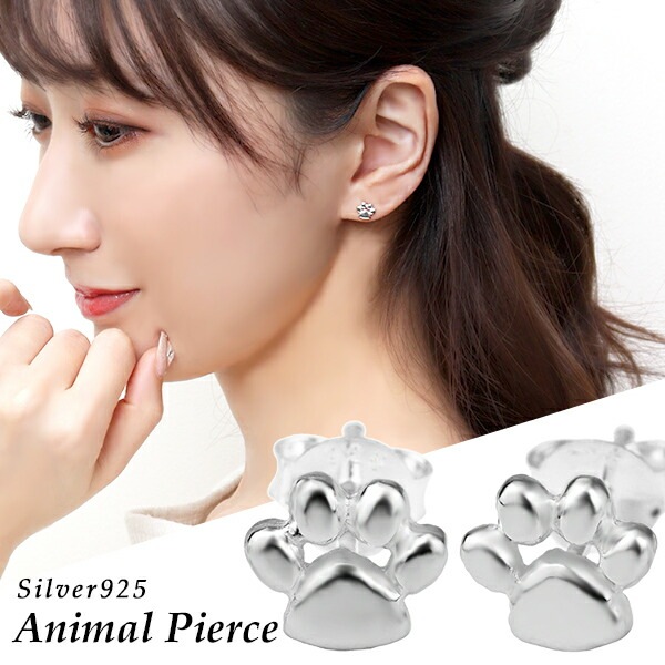 肉球 シルバー ピアス 2P 両耳用 犬 猫 動物 足あと スタッドピアス シルバー925 レディース シルバーピアス スタッズ ...