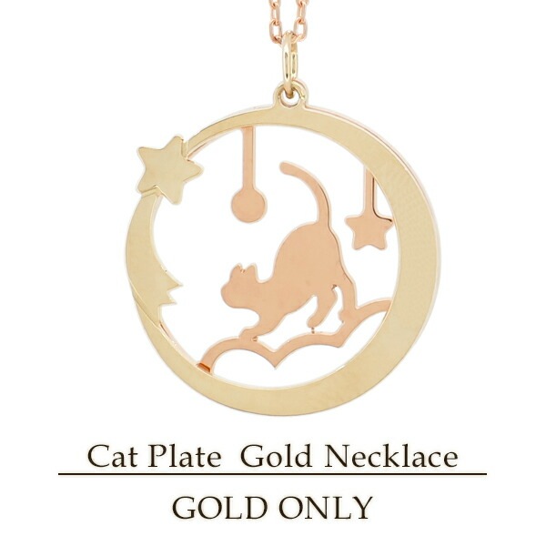 K10 PG YG 流れ星と三日月の中 猫シルエット スライドプレート ネックレス 10金 10k k10 ピンク イエロー ゴー...