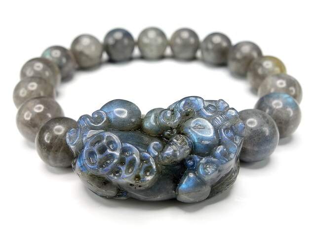 逸品天然石高級ラブラドライトヒキュウ彫り12mmブレスレット石街