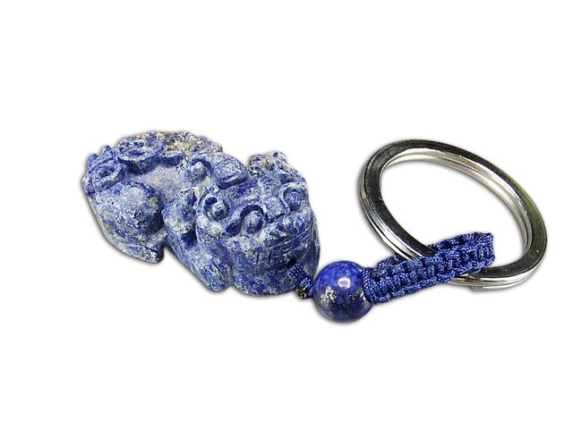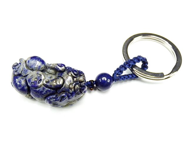 天然石ヒキュウ彫りキーホルダーAAラピスラズリ中型幸運石街