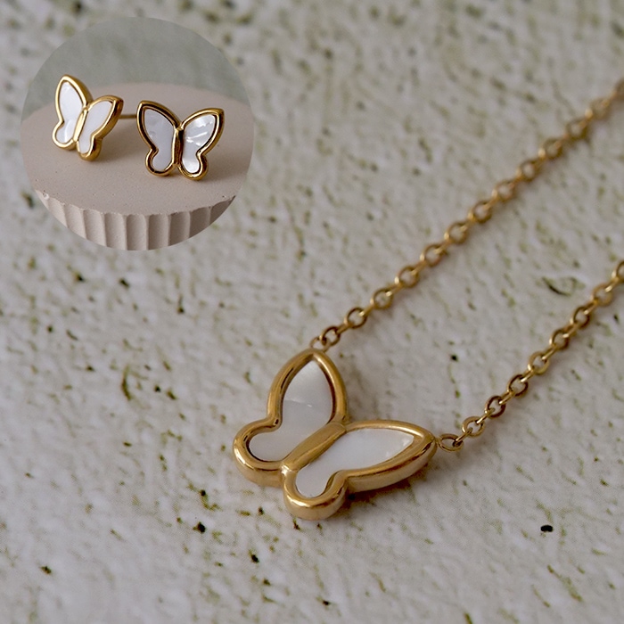 【金属アレルギー対応】 02.ステンレス セット ネックレス ピアス 蝶 ゴールド 国内発送【メール便送料無料】