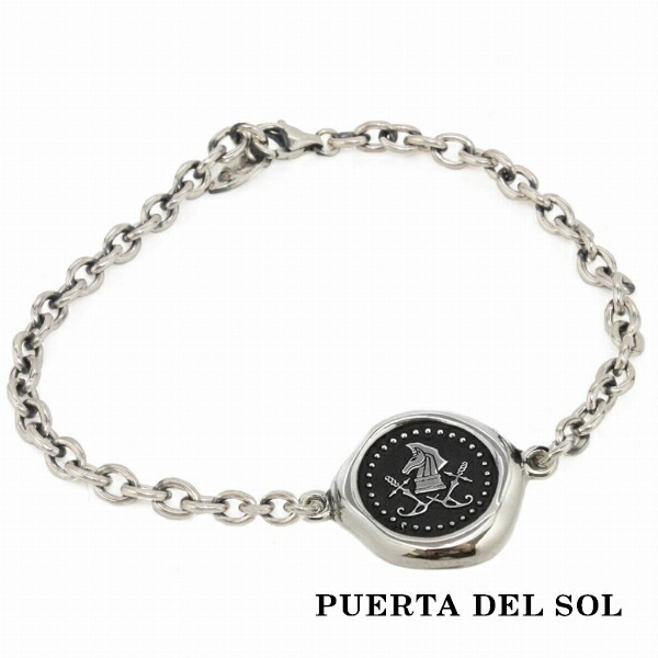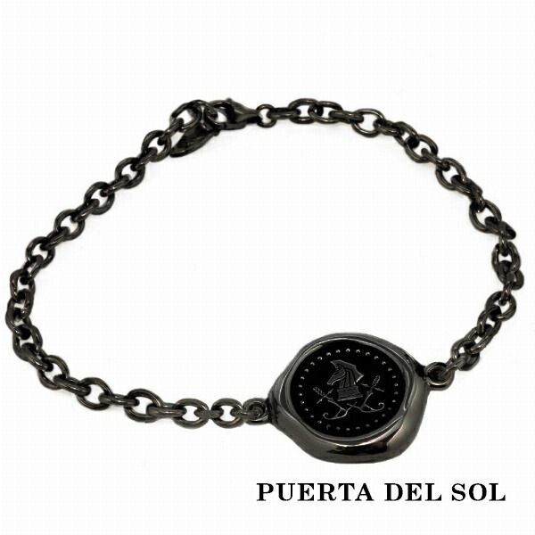 PUERTA DEL SOL SealingStamp シーリングスタンプ ブラック チェーン ブレスレット ブラック シルバー9...
