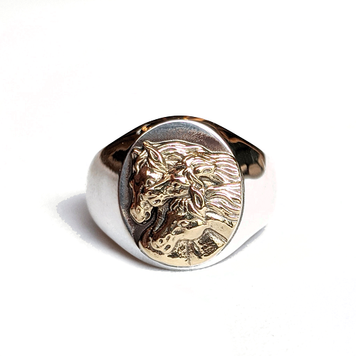 PHARAOHS HORSES RING OVAL LARGE/ALL SILVER