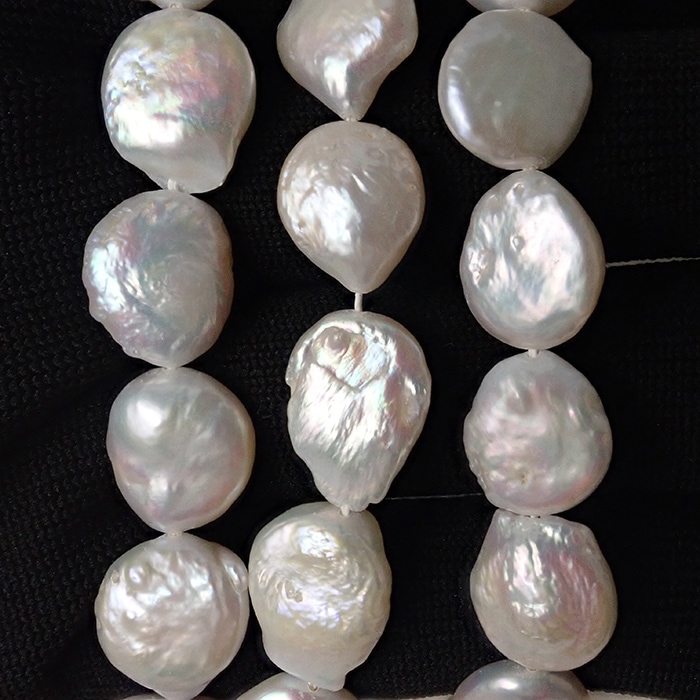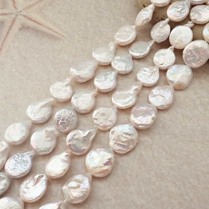 【有核 淡水真珠 約12-14mm】ホワイト コイン型 天然 大粒 テリ良し 約37cm 連 アクセサリー
