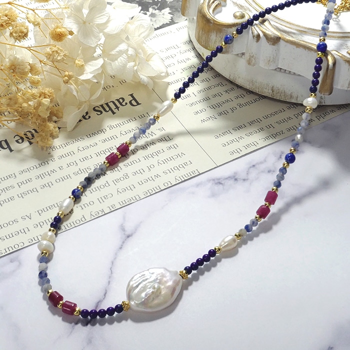 Gemelise ジェメリース 淡水パール×天然石(ラピスラズリ)ネックレス 950213