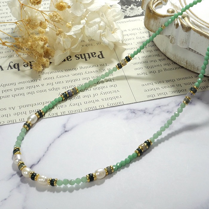 ストーン ネックレス グリーンアベンチュリン ブルーアベンチュリン 淡水パール 約39cm SUS316 950235