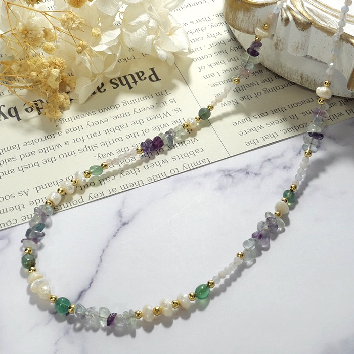 ストーン ネックレス フローライト ジルコン 淡水パール 約39cm SUS316 950228
