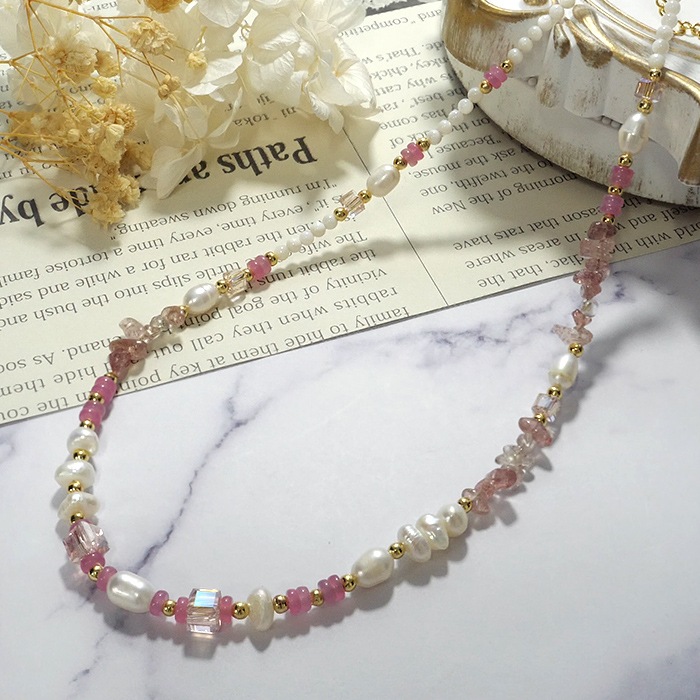 ストーン ネックレス ストロベリークォーツ シェル 淡水パール 約39cm SUS316 950218