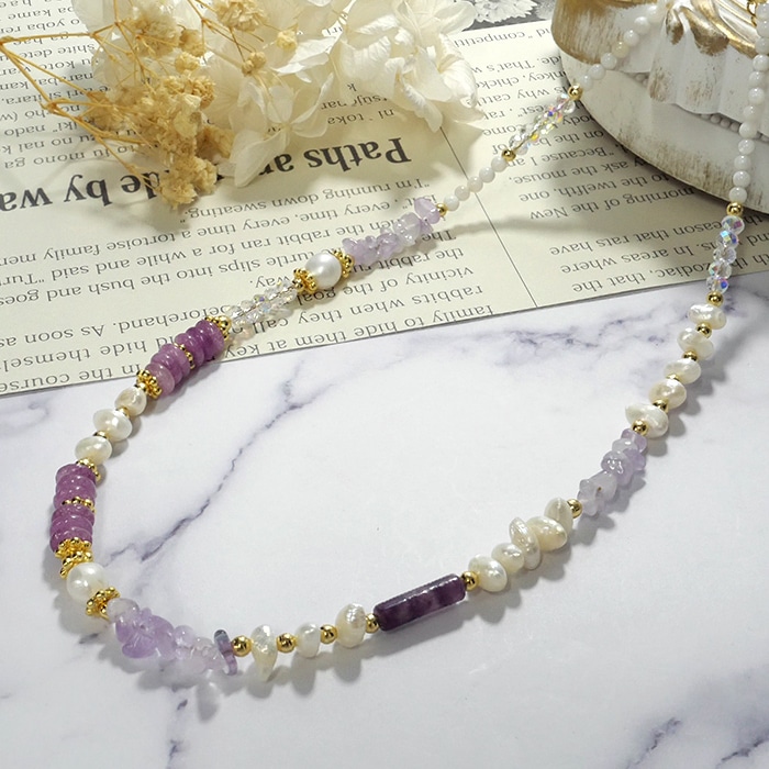 Gemelise ジェメリース 淡水パール×天然石(アマゾナイトなど)ネックレス 950199