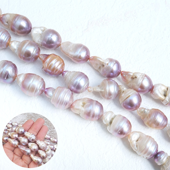 【有核 淡水真珠】大粒 穴なし 縦約20-29mm バロックパール 1粒 ラベンター系~虹色光沢 ハンドメイド用