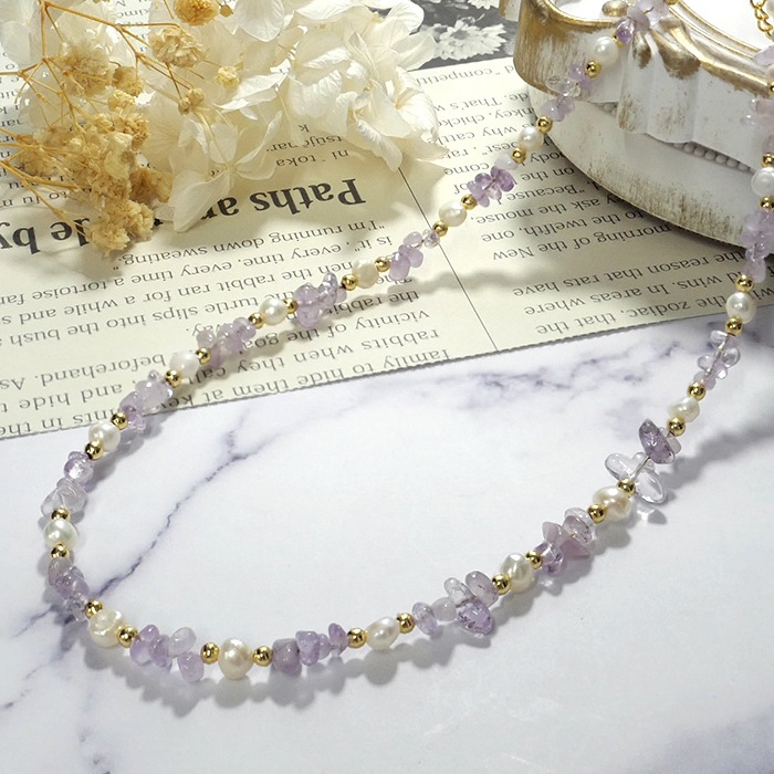 ストーン ネックレス アメジスト 淡水パール 約39cm SUS316 950256