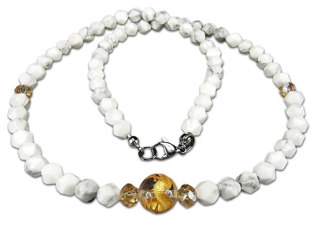 オシャレハウライト三角カット約6mm水晶金龍手彫り天然石ワイヤー仕上げネックレス