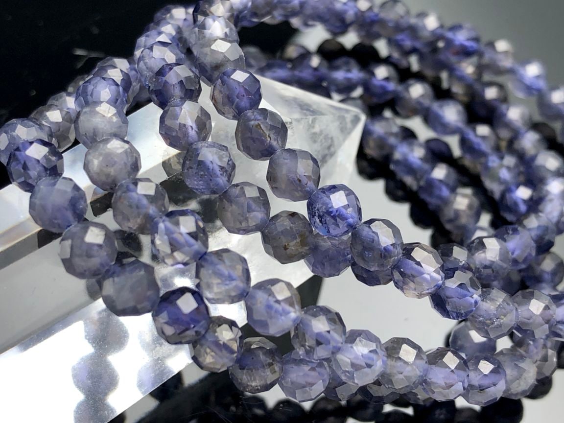 マダガスカル産★天然石ブレスレット/アイオライト(ウォーターサファイア/Iolite/菫青石)/64面カット/約5-6mm/1本【...