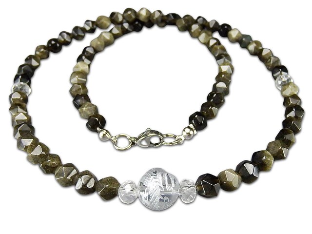 【魔除け】天然石オブシディアン128面カット水晶ステンレスクロスネックレス