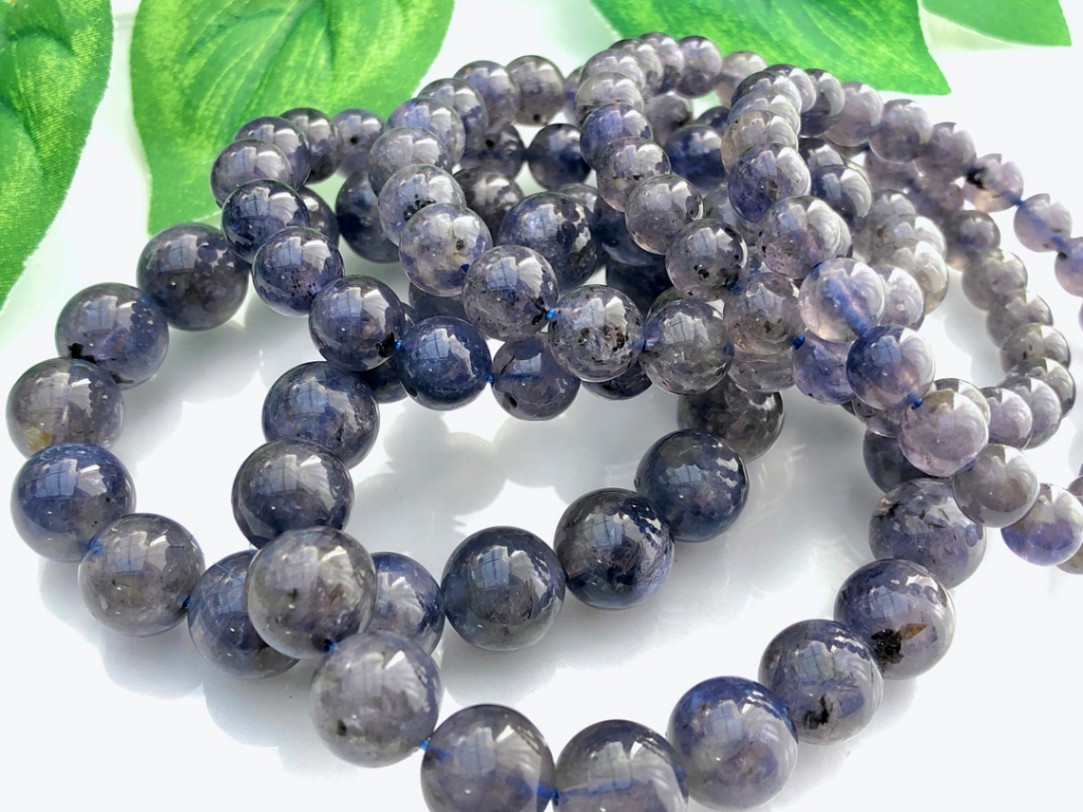 良好発色★艶々光沢!★天然石ブレスレット/マダガスカル産/アイオライト(ウォーターサファイア/Iolite/菫青石)/ラウンド/約...