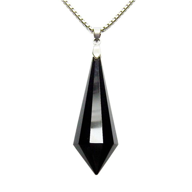 AAAA天然石オブシディアン しずく カット ステンレス ネックレス まよけ