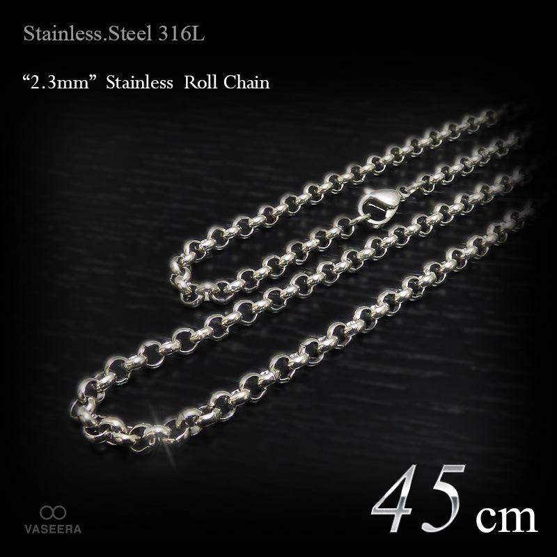2.3mm幅 ステンレス ロール・チェーン(甲丸/真円あずき) 45cm(ショートサイズ) 【ステンレススチール316L(SUS3...