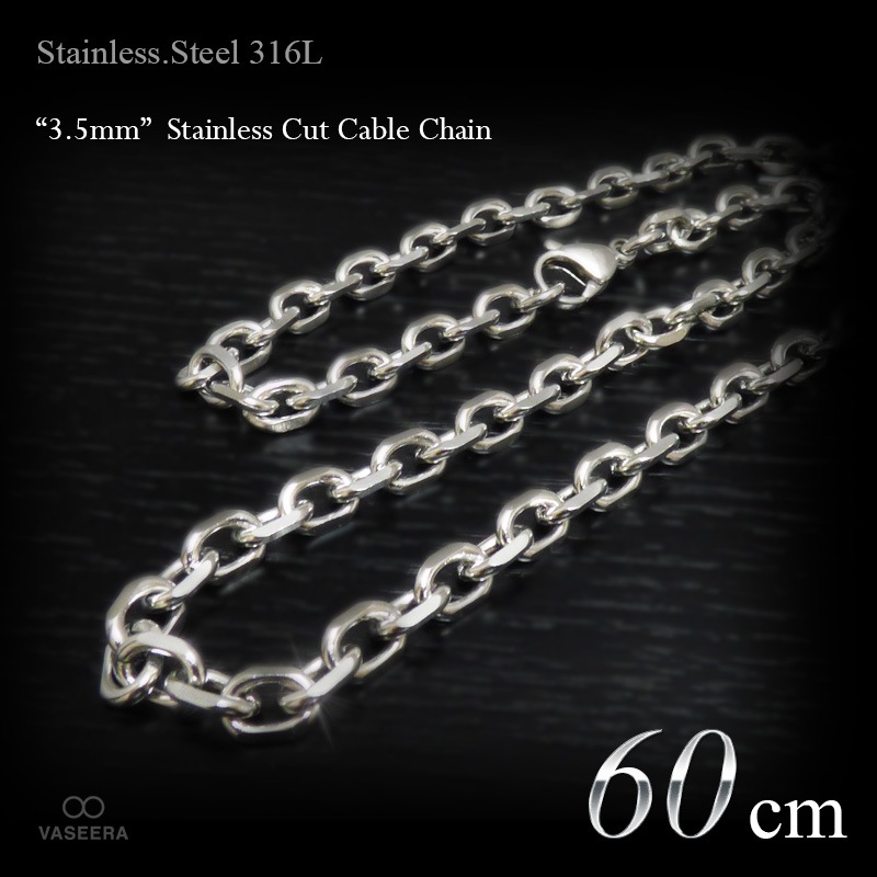 3.5mm幅 ステンレス 2面カットあずき チェーン 60cm(ロングサイズ) 【ステンレススチール316L(SUS316L) /...