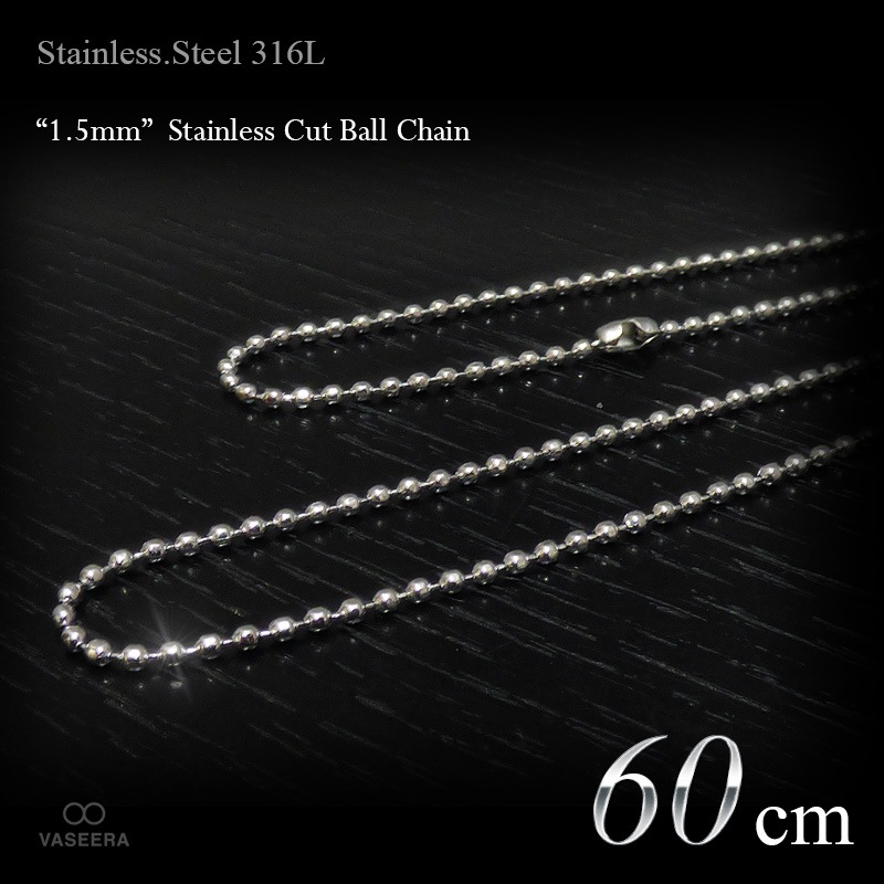 \"細身\"1.5mm幅 スライスカット仕上げ ステンレス ボールチェーン 60cm(ロングサイズ)【ステンレススチール316L(...