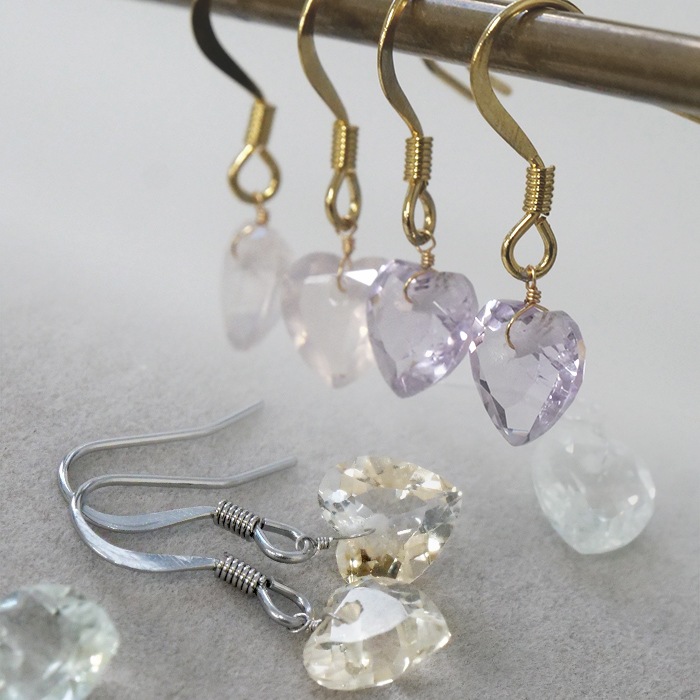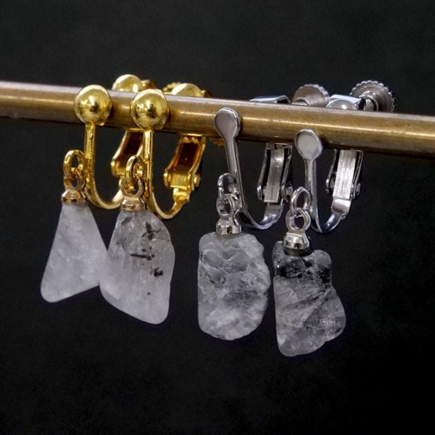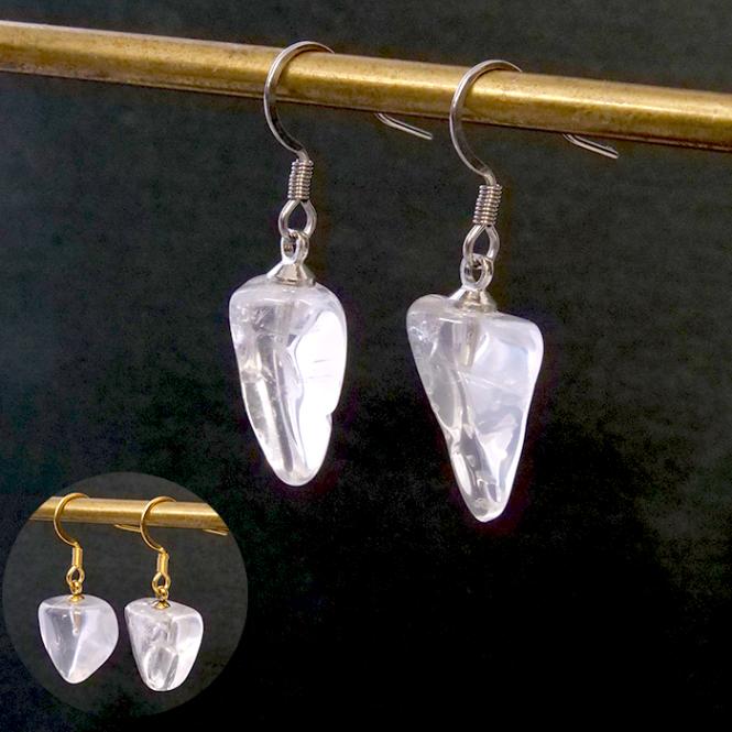 68 アーカンソー水晶 フックピアス 1ペア 原石 ステンレス 金属アレルギー対応 日本製 メール便送料無料