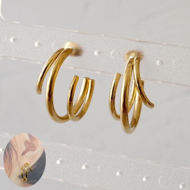 金属アレルギー対応 ステンレスピアス 【169. トリプルリング ピアス】 ゴールド/シルバー スタッド メール便送料無料 国内発...