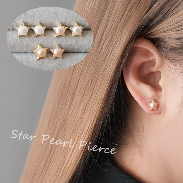 【267. 淡水パール 星型 ピアス 5mm 1ペア】 シルバーポスト スター 宇宙 シンプル 真珠 オケージョン フォーマル 入...