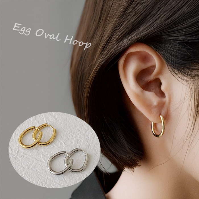 金属アレルギー対応 【257. エッグオーバル フープピアス 1ペア】 サージカル 316 つけっぱなし 金アレ 変色しにくい ...
