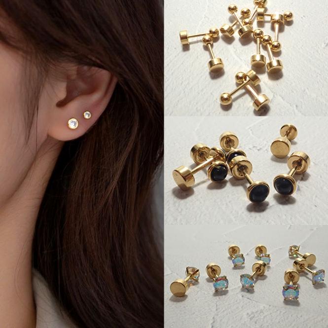 金属アレルギー対応 205. ネジ式 一粒 ピアス 1ペア(2個)20ゲージ スタッドピアス ボディピアス ジルコニア レディース...